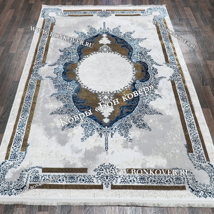 Коротковорсный Турецкий Ковер Для гостиной New2 дизайн 04 Серый с Синим станет стильным преображением вашей комнаты, подчеркивая высокий статус семьи владельца.
