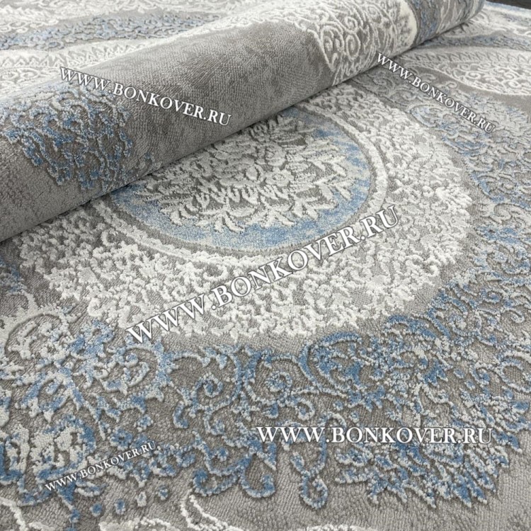 Турецкий Ковер Для Гостиной Дизайн 33 Синий с Серым Круг станет великолепным преображением вашей комнаты, подчеркивая высокий статус владельца.