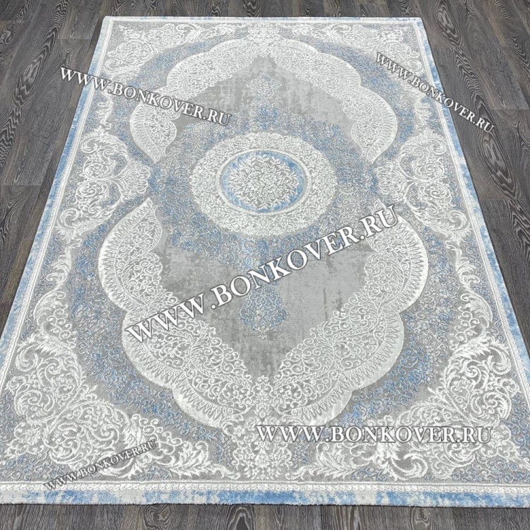 Изящный Турецкий Ковер Для Гостиной Дизайн 33 Синий с Серым Прямоугольный наполняет интерьер квартиры теплом и уютом, гармонично сочетает в себе изящество и красоту. Он выполнен из экологически чистого сырья, комфортный и долговечный.